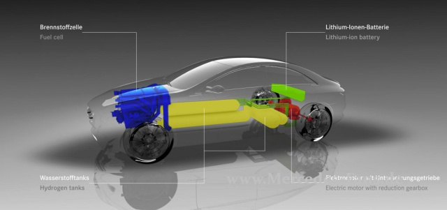 Der Brennstoffzellen-Elektroantrieb für den F 800 Style wurde so konzipiert, dass er sich komplett im Vorderwagen unterbringen lässt. Die kompakten Komponenten ermöglichen die Integration des Elektroantriebs mit Brennstoffzelle in ein heckgetriebenes Fahrzeug mit den Abmessungen einer konventionellen Limousine. Der Elektromotor liegt dann platzsparend zwischen den Hinterrädern, die Lithium-Ionen-Batterie hinter der Rücksitzlehne. Die vier Wasserstofftanks sind bestmöglich geschützt im Mitteltunnel zwischen den Passagieren sowie unter der Rücksitzbank platziert.