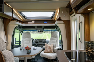 Der neue Mercedes Sprinter bietet mit seiner serienmäßig gewohnt hohen Motorisierung eine besonders gute Leistung auf den Straßen. Für ein deutliches Plus an Sicherheit sorgen die zahlreichen automotiven Assistenzsysteme: Seitenwind- und aktiver Bremsassistent sowie der aktive Abstands-Assistent DISTRONIC. Zusätzlich gibt es Airbags für Fahrer und Beifahrer in Serie, während Keyless Start und Lichtautomatik deutlich mehr Fahrkomfort versprechen. Optisch passt sich sowohl der ML-T als auch der Grand Canyon S an die Formsprache von Mercedes-Benz an, wodurch beide Fahrzeuge eine entsprechend moderne Optik erhalten. Die neue Außendesignabklebung bei HYMER und eine angepasste Zusatzabklebung bei HYMERCAR wirken sich zusätzlich positiv auf das neue Exterior aus. Das Cockpit von ML-T und Grand Canyon S bietet viele Ablageflächen und einen automotiven, stimmigen Gesamteindruck. Zur Individualisierung des Interiors stehen für den ML-T zwei Möbeldekore in Holzoptik zur Auswahl, während der Grand Canyon S durch sein bekanntes und helles Holzdesign sowie den neuen Fußboden in einem farblich passenden, dezenten Grauton besticht.