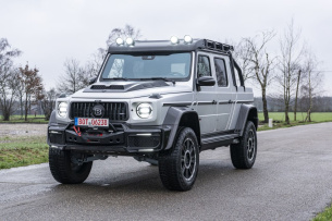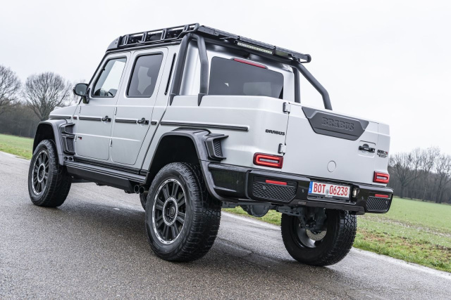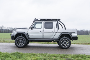 Jetzt legt G-Klassen-Experte und Edeltuner Brabus noch eine Schaufel nach und verleiht der aktuellen Mercedes G-Klasse nicht nur Flügel, sondern spendiert ihr auch eine offene Ladefläche nebst Leistungsnachschlag. Dabei bleibt die Fahrgastzelle erhalten, während Radstand (50 cm) und Fahrzeugheck (20 cm) um insgesamt 70 Zentimeter verlängert werden. So kommt der Offroader, der es problemlos in einen Endzeitstreifen schaffen würde, auf eine Gesamtlängt von stattlichen 5,33 Metern. Der Umbau selbst ist mit den Veränderungen an Karosserie und dem verlängerten Rahmen so aufwendig, dass er knapp vier Monate dauert. Kaum hatte Brabus seinen Offroad-Hochsitz der Öffentlichkeit vorgestellt, trudelten die Bestellungen ein. Derzeit wird am Standort in Bottrop bereits das dritte Fahrzeug fertiggestellt; 19 weitere Aufträge liegen vor und Brabus nimmt aktuell keine mehr an – weil die Wartezeit nach Aussagen von Brabus-Sprecher Sven Gramm dann zu lange wäre: „Wir sind mit den Aufträgen aktuell schon bei Ende 2021.“