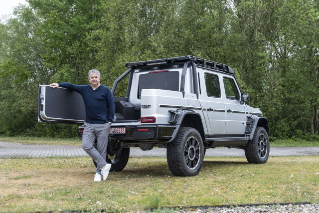 Eine G-Klasse mit offener Ladefläche – das gab es doch schon einmal? Gab es. In den Anfangsjahren im Baumuster 460, als die Mercedes G-Klasse noch ein echtes Nutzfahrzeug war, wurde sie ab Werk auch als Fahrgestell mit Kabine und auf Wunsch auch offener Ladefläche direkt ab Werk in Graz angeboten. Vor rund zehn Jahren flatterte dann einen Sonderauftrag der australischen Armee für sechsrädrige Militärversion in Österreich ein – ebenfalls hinten offen. Hiervon legte AMG 2013 einen spektakulären 6x6-Power-Offroader mit 544 PS und 760 Nm auf, der sich ebenso großer Beliebtheit erfreute, wie eine ähnlich positionierte Brabus-Variante mit 700 trampelnden Pferden unter der Haube und noch mehr Exklusivität.
