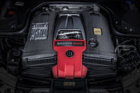 schafft der knapp zwei Tonnen schwere Allradler den Spurt von 0 auf 100 km/h in 3,0 Sekunden und bietet eine abgeregelte Höchstgeschwindigkeit von 300 km/h. Mehr wäre drin; aber dann wird mit den Reifen schwierig. Kaum zu glauben, aber der bollernd schwarze Ritter kann auch dezent und dann gleich überaus komfortabel. Kein Wunder daher, dass der Normverbrauch auf dem Papier bei mehr als akzeptablen 10,8 Litern Super auf 100 Kilometern liegt. Das Leistungsplus von rund 200 PS bringen zwei spezielle Turbolader (1,6 bar) mit größerem Verdichter, deren Durchmesser bei 52 Millimetern liegt sowie zwei Rumpfgruppen mit verstärkter Lagerung. Damit dies alles perfekt mit der Motorentechnik aus Affalterbach sowie dem Basispaket aus Stuttgart funktioniert, gibt es ein Brabus-Steuergerät, das per Plug-and-Play-Kabelbaum an die Technik des AMG-Serienmodell angeschlossen wird.