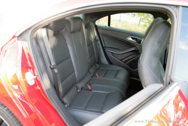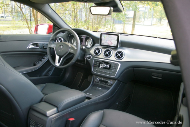 Das kleine Lederlenkrad mit drei chromverzierten Speichen und den Funktionstasten unterstreicht das gehobene, aber sportliche Ambiente. Wer die Sieben-Gang-Automatik an Bord hat, der findet den Wählhebel auch beim CLA an der Lenksäule. In der ersten Reihe bietet der CLA komfortablen Platz für Fahrer und Beifahrer, deutlich beengter geht es da auf der Rückbank zu.