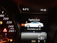 Mir sind des öfteren Mercedes-Benz Fahrzeuge entgegengekommen und bei diesen Modellen hätte das Tagfahrlicht leuchten müssen. Ich fragte deshalb bei der Baureihen-Pressesprecherin Anja Wassertheurer nach: "Wir sind als Hersteller seitens des Gesetzgebers verpflichtet, neue Modelle mit Tagfahrlicht auszurüsten, die Fahrer können dieses allerdings auf eigenen Wunsch abschalten". Beim Testen des CLA ist mir dann in der Multifunktionsanzeige aufgefallen, dass die Funktion, das Tagfahrlicht auszuschalten über einen Tastendruck tatsächlich erfolgen und somit die Tagfahrlichtpflicht umgangen werden kann - ein unsinniges Feature auf Kosten der Sicherheit!