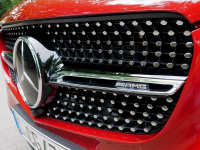 Der erste Eindruck des Mercedes-AMG GLC 43 4MATIC ist großartig. Die 21-Zoll-AMG-Felgen im 5-Doppelspeichen-Design in den Farben schwarz-silber sorgen für einen imposanten Auftritt und ein mächtiges Erscheinungsbild. 21-Zoll-Felgen in diesem auffälligen Design sind im heutigen Straßenverkehr durchaus selten und haben zweifellos das Zeug zum Hingucker. Passend dazu kommt unser Testwagen in einer knalligen roten Lackierung, die auf den Namen "designo hyazinthrot metallic" hört. Abgerundet wird der erste Eindruck durch einen kräftigen, großen Stern inmitten des Diamant-Grills. In der Grundausstattung ab Werk sind die seitlichen Trittbretter bei dem sportliche Midsize-SUV nicht dabei. Wer sie vermisst und/oder als Einstiegshilfe benötigt, kann sie als optionales Zubehör (Aufpreis: 559,30€) ordern.