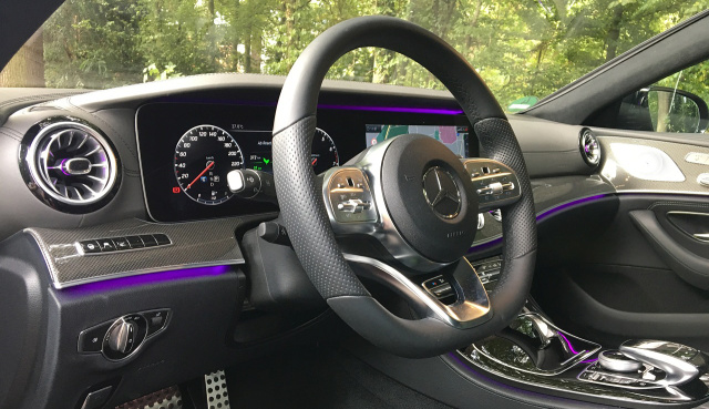 Wir fuhren den CLS 450 4Matic, dessen Reihensechszylinder nicht nur mit einer turbinenartigen Laufcharakteristik aufwartete, sondern mit seinen 367 PS sehr kräftig zu Werke geht. Im Zusammenspiel perfekt abgestimmt mit dem aktuellen 9-Ganggetriebe, verrichtet der biturbogeladene „Mildhybride" seine Arbeit souverän und ohne aufdringliche Lärmkulisse. Im Sportmodus ist alles eine Spur unmittelbarer, doch akustisch bleibt der Viertürer vergleichsweise dezent. Warum Mildhybrite? Rein elektrisch kann der mit einem 48 Volt-Bordnetz ausgerüstete CLS nicht fahren, noch nicht mal Schrittgeschwindigkeit auf dem Parkplatz. Sein 22 PS starker E-Motor dient als Startergenerator und dank 250 Nm als kraftvoller Anschub beim Beschleunigen. Die Kraftentfaltung geschieht dabei überraschend undramatisch. Dabei beschleunigt der Benz in 4,8 Sekunden aus dem Stand auf Tempo 100. Die Höchstgeschwindigkeit liegt bei 250 km/h. Da wo es mal nur im Stopp-and-Go-Modus vorangeht, spielen die aktuellen Assistenzsysteme ihre Stärken aus. Im Stau genügt es eine Hand ans Lenkrad zu legen, den Rest übernimmt das Auto. Der CLS ist wie die S-Klasse ausgestattet mit den neusten Assistenzsystemen und kann den Fahrer vielfältig unterstützen. Autonom fahren kann er noch nicht, aber der Fahrer kann sich mit einer Hand am Steuer auf die Rolle des Kapitäns zurückziehen und sein fast autonom fahrendes Auto überwachen.