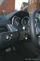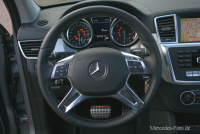 Ansonsten präsentiert sich der ML im Interieur wie ein typischer Mercedes-Benz. Ebenfalls an der Lenksäule sitzt der Wahlhebel für die 7G-Tronic-Plus-Automatik die Schaltwippen für die manuelle Gangwahl liegen gut erreichbar hinter zwei der vier Lenkradspeichen im Gegensatz zu dem von uns leider viel zu oft benötigten Schalter für den Heckscheibenwischer, der am Blinkerhebel links sitzt.