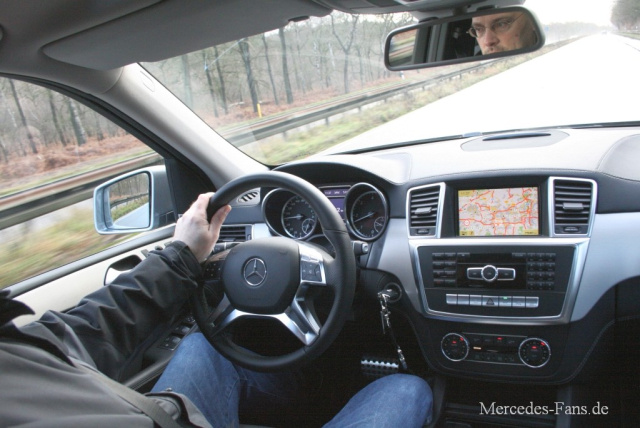 Von wegen graue Maus! In der Regel fallen nicht alle unsere Testwagen gleich jedem Verkehrsteilnehmer auf. Klar, mit einem SLS AMG ist uns so gut wieder Blick sicher, doch das hätten wir bei der neuen M-Klasse nicht erwartet. Gleich am ersten Tag rollt neben uns eine Mercedes-Benz E-Klasse W212 langsam an die Ampel und die Insassen mustern den SUV, drehen sich um und heben den Daumen. Ups aufgefallen! Kurzer Blick auf das Kennzeichen der E-Klasse: Nein, kein Presse-Kollege oder Autohaus-Dienstwagen anscheinend ein echter Mercedes-Fan.