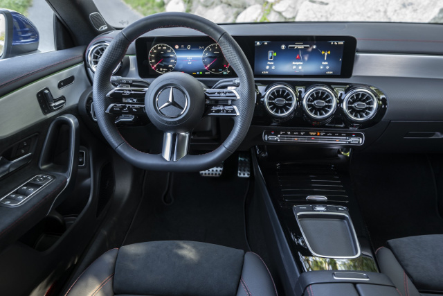 Dabei hält sich der Kraftstoffverbrauch mit 5,1 Litern Diesel auf 100 Kilometern ebenso angenehm zurück wie jegliche Auffälligkeiten bei Fahrwerk oder Antrieb. Das siebenstufige Doppelkupplungsgetriebe passt gut zum drehmomentstarken Diesel, die Federung ist stramm, aber trotz groß dimensionierter Räder nicht hart und wenn es eines zu bemängeln gibt, dann ist das der fehlende Allradantrieb in der Optionsliste. Dieser bleibt dem CLA 250 Benziner sowie den AMG-Versionen vorbehalten. Doch gerade auf kurvenreicher Strecke machen sich die Antriebskräfte der 190 PS und 400 Nm Drehmoment durchaus spürbar im nun serienmäßig belederten Lenkrad bemerkbar. Der Allradantrieb würde hier gut passen. Doch so ist es die Reichweite, die erfreuen kann, denn der 51 Liter große Tank sorgt dafür, dass bei zurückhaltendem Gasfuß Etappen bis 1.000 Kilometer ohne Zwischenstopp drin sind.