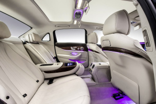 Der ohnehin sehr gute Reisekomfort des Schwaben wird von der Chinaversion speziell im Fond deutlich getoppt. Das ist nicht nur das deutliche Plus an Beinfreiheit (13,4 cm), sondern auch Rücksitze, die sich über ein Touchpad in der Mittelarmlehne oder die Bedienmodule in den Türen elektrisch verstellen lassen. Zudem lässt sich der Beifahrersitz vom Fond aus elektrisch nach vorne fahren. Auf Wunsch gibt es nicht nur eine getrennte Fondklimatisierung und schattenspendende Jalousien rundum, sondern gekühlte und beheizte Rücksitze, USB-Ports sowie Halterungen für Pads an den Rückenlehnen der Frontsitze. Die Rücksitze sind angenehm konturiert und sorgen zusammen mit dem ausgesetzten Kissen auf den Kopfstützen für jede Menge Wohlfühlambiente, wenn es quer durch die alltäglichen Staus von Nanjing, Wuxan oder Shanghai geht.