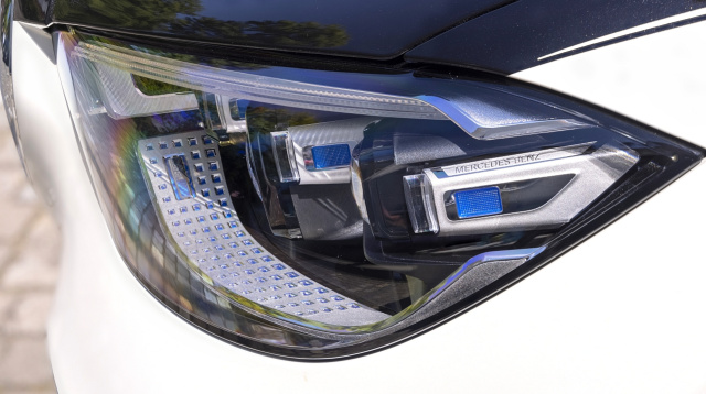 Optimales Licht ins Dunkle bringt beim Mercedes-Maybach das DIGITAL LIGHT. Die Scheinwerfertechnologie gehört zur Sonderausstattung und ermöglicht neue Funktionen, etwa die Projektion von Hilfsmarkierungen oder Warnsymbolen auf die Fahrbahn. DIGITAL LIGHT besitzt in jedem Scheinwerfer ein Lichtmodul mit drei extrem lichtstarken LEDs, deren Licht mit Hilfe von 1,3 Millionen Mikrospiegeln gebrochen und ausgerichtet wird, insgesamt beträgt beim Fahrzeug die Auflösung also 2,6 Millionen Pixel.