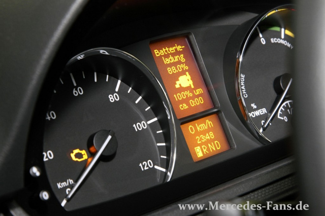 Klar gegliederte Armaturen! Die Reichweite - zwischen 80-100 km - hat der Fahrer gut im Blick.