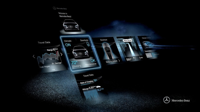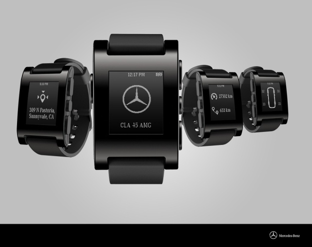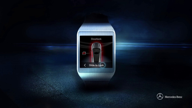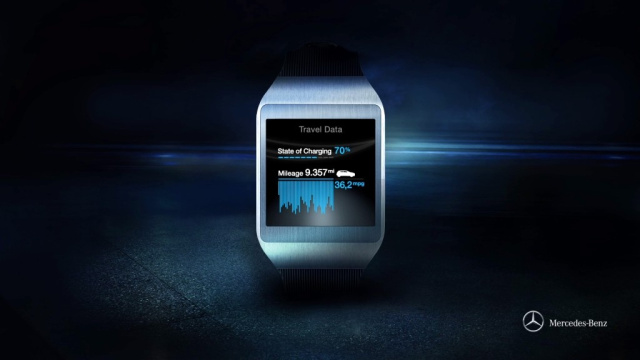 Außerdem bot Mercedes-Benz einen spannenden Einblick in aktuelle Entwicklungsprojekte sowie innovative Technologien. Dazu gehörte auch ein wearable device, mit dem Mercedes-Benz in einer Weltpremiere den Messebesuchern den nächsten Schritt in Sachen Fahrzeugvernetzung präsentierte, die bereits in den kommenden Monaten umgesetzt werden soll: Das Abrufen und Anzeigen relevanter Fahrzeugdaten aus der Ferne mit einer Smart-Armbanduhr von Pebble Technology.
