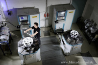 Aufgrund des Mock-ups kreiert dann der mit der Fertigung beauftragte Radhersteller die nötigen Formen, Produktionswerkzeuge und -verfahren, anschließend entstehen die ersten Musterräder. In dieser Prototypenphase führt der Radhersteller in Zusammenarbeit mit Mercedes-Benz detaillierte Untersuchungen der entstehenden Räder und des gesamten Produktionsprozesses durch. Die Vorgabe: Eine optimale Fertigung auf qualitativ hohem Niveau. Ist dieses Ziel erreicht, wartet ein wahres Folterprogramm auf die neuen Räder, die aus dem Testlauf der abgestimmten Großserienfertigung entnommen werden.