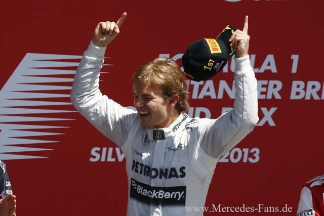 Sieg für die Silberpfeile in Silverstone: Nico Rosberg gewann den Großen Preis von Großbritannien. Es war nach dem Erfolg in Monaco sein zweiter Sieg in der Formel 1-Saison 2013. Lewis Hamilton überquerte die Ziellinie beim Heimrennen von MERCEDES AMG PETRONAS in Silverstone als Vierter. Hamilton verteidigte seine Pole Position mit einem guten Start und konnte sich schnell vom Rest des Feldes absetzen. Rosberg hingegen verlor von Startplatz zwei eine Position.