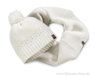 Diamonds are a girls best friends Highlight der neuen Armbanduhr Sports Fashion sind die CRYSTALLIZED Swarovski Elements auf den Stundenindices. Die Damenuhr (199,90 Euro1) besitzt ein 42 Millimeter großes Edelstahlgehäuse mit feststehender Lünette und ein Armband aus Kautschuk. Das weiß/pinkfarbene Zifferblatt ziert ein Sternmotiv. Das Quarzwerk Ronda 5030 verfügt über Chronofunktion und Datumsanzeige. Die Uhr ist bis 5 ATM wasserdicht und wird in der Schweiz gefertigt. Glitzersteinchen zieren ebenso die wollweiße Strickmütze (34,90 Euro), die aus einer Wollmischung gefertigt ist. Ebenfalls wollweiß ist der gestrickte Loop-Schal für 49,90 Euro, circa 35 cm breit und 144 cm im Umfang lang.
