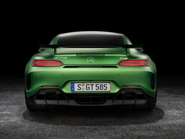 Die speziell entwickelte Abgasanlage liefert nicht nur echten Rennwagensound, sondern spart durch die Verwendung von Titan für den Nachschalldämpfer und dünnwandigem Edelstahl für den vorderen Bereich der Abgasanlage auch rund sechs Kilogramm Gewicht gegenüber dem AMG GT. Die große, zentral in der Heckschürze platzierte Endrohrblende betont mit ihrer speziellen, sechseckigen Form den Rennsport-Charakter. Zwei weitere Endrohre befinden sich links und rechts im Diffusor. Ihre Blenden sind wie im Rennsport mit Carbon ummantelt, um den Diffusor vor den hohen Abgastemperaturen zu schützen. Serienmäßig ist die Abgasanlage mit zwei stufenlos verstellbaren Abgasklappen ausgestattet, die den Sound des AMG GT R direkt beeinflussen.