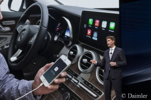 Als erster deutscher Premium-Hersteller bringt Mercedes-Benz das Infotainmentsystem CarPlay von Apple ins Auto. Wie das System im Fahrzeug funktioniert, demonstriert Mercedes-Benz in einer neuen C-Klasse auf dem Genfer Automobilsalon.