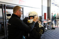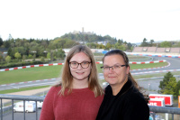 Black Falcon ist eines der erfahrensten Team in Sachen Racetaxi. Entsprechend routiniert spulte die Mannschaft das Programm ab. Kurz vor der Fahrt bekamen unsere Gewinnerinnen noch ihre Rennhelme angepasst und stellten sich in der Boxengasse an. Pünktlich durften zunächst Mama Manuela und danach Tochter Sarah im Renntaxi Platz nehmen. Gar nicht so einfach angesichts des massiven Überrollkäfigs im sonst nackten Innenraum des Rennwagens. Danach ging es für eine fliegende Runde auf die Strecke. Knapp 10 Minuten später stand der AMG wieder in der Box und entließ sichtlich beeindruckte Mitfahrer.