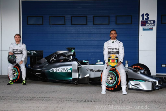 Er ist da: Der neue Silberpfeil Mercedes F1 W05 für die Formel 1-Saison 2014 präsentiert sich in strahlender Pracht. Auf der Rennstrecke im spanischen hob das MERCEDES AMG PETRONAS Team den Vorhang für den neuen Mercedes Formel 1 Rennwagen. Wie im Vorjahr werden Lewis Hamilton und Nico Rosberg hinter dem Steuer des Silberpfeils sitzen.