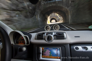 Unbestrittenes Highlight der smart times ist die gemeinsame Ausfahrt. Im Konvoi, unterstützt durch Verkehrsführungsmaßnahmen von Feuerwehr und Polizei, fuhren auch dieses Mal wieder über 1.200 smart , smart Forfour und smart Roadster über 40 Kilometer lange Strecke über Alpenstraßen durch die malerische Landschaft mit spannenden Serpentinen und interessanten Streckenführungen. Dabei konnte auch der am Samstagnachmittag einsetzende Regen die gute Laune und familiäre Stimmung vom Veranstaltungsteam um Charlotte Siegel und den Besuchern nicht trüben. Ausgerüstet mit Regenjacken und Schirmen, standen die Anwohner der Dörfer und Gemeinden gespannt entlang der Route, winkten den vorbeifahrenden Smarts und begrüßten das bunte Gewusel mit Freude.
