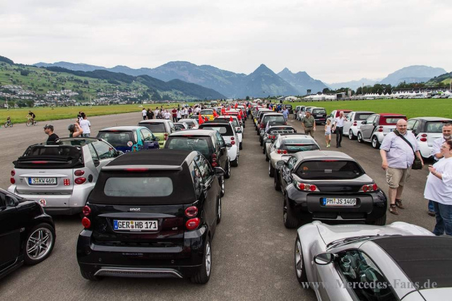 Die Schweiz ist bekannt für ihre grandiose Berglandschaft, leckere Schokolade und feinen Käse. Seit letztem Wochenende darf man auch das smart times-Event zu der bemerkenswerten Historie des Alpenlandes addieren. Vom 23. - 25.8. trafen sich im schweizerischen Luzern, genauer gesagt auf dem Flughafen Buochs (unweit des Vierwaldstättersees), rund 1.700 smart -Freunde mit ihren Kultautos um die Tradition rund um DAS Cityauto schlechthin und seine inzwischen auf ansehnliche Größe gewachsene Familie gebührend zu feier
