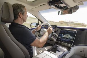Egal, mit welchem der Fahrprogramme man unterwegs ist, das Paket aus 2,4 Tonnen schwerem Crossover und 21-Zoll-Radsatz ist betont straff abgestimmt. So ist der Aufenthaltswert im Komfortmodus mit Abstand das angenehmste und nur wenn es sehr kurvenreiche Landstraßen geht, sollte man in den Sportmodus wechseln, was das Ansprechverhalten von Lenkung, Antrieb und Dämpfern spürbar nachschärft. Dabei gibt es drei Stufen der regenerativen Bremsung, die der Fahrer über die am Lenkrad angebrachten Schaltwippen auswählt, wenn er diese Arbeit nicht dem Automatikmodus überlassen will. Die stärkste Stufe D+ erlaubt es, fast ohne Berührung des Bremspedals zu fahren, wobei der EQE SUV über kein Ein-Pedal-Antriebssystem verfügt. Die Fahrleistungen des 350+ gehen in Ordnung, wobei eine Höchstgeschwindigkeit von 210 km/h und 0 auf Tempo 100 in 6,7 Sekunden für manch sportlich ambitionierte Kunden kaum ausreichen werden. Noch wichtiger: im Realbetrieb verbrauchte der EQE 350+ 20,4 kWh/100 km, was eine Reichweite von immerhin 500 Kilometern ermöglichen würde.
