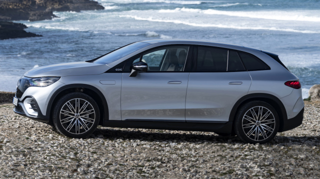 Auf Wunsch kann die Vierlenker-Einzelradaufhängung vorn nebst Mehrlenkeraufhängung hinten mit Luftfedern und elektronischen Dämpfern variabler ausgestattet werden, um das individuelle Ansprechverhalten der einzelnen Räder in der Druck- und Zugstufe steuern. Die Luftfeder hält die Bodenfreiheit unabhängig von der Beladung des Fahrzeugs konstant, lässt aber auch Variationen zu. So wird beispielsweise im Sportmodus die Bodenfreiheit bei Geschwindigkeiten über 120 km/h um 20 beziehungsweise um zehn Millimeter im Komfortmodus verringert, um den Luftwiderstand zu reduzieren und die Stabilität zu erhöhen. Unterhalb von 80 km/h kehrt die Bodenfreiheit in die Standardposition zurück. Bis 60 km/h kann die Karosserie per Knopfdruck um 30 Millimeter angehoben werden, ab Tempo 70 senkt sie sich automatisch auf die normale Bodenfreiheit ab. Die mehr als sinnvollen Allradversionen verfügen über einen Offroad-Modus, der das Fahrzeug um 25 Millimeter anhebt, um mehr Bodenfreiheit zu schaffen. Mit seiner optionalen Hinterachslenkung gewinnt der EQE SUV an Agilität und der Wendekreis reduziert sich von 12,30 auf 10,5 Meter.