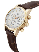 Auf ein klassisches Erscheinungsbild kombiniert mit einem modernen Quarzwerk setzen die Zeitmesser der Classic Line. Neu ist beispielsweise der Chronograph Classic Retro Gold für Herren ( 249,90). Das Edelstahlgehäuse (Durchmesser: 42 mm) ist roségoldfarben beschichtet, auch die Zeiger und applizierten Indexe wurden in dieser Farbe umgesetzt. Das Zifferblatt ist hingegen silberfarben. Diese Swiss Made Uhr mit Stoppfunktion ist wasserdicht bis 5 ATM und besitzt ein gehärtetes Mineralglas. Das braune Kalbslederarmband weist eine Krokoprägung auf.
