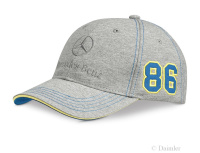 Baseball-Caps sind nicht nur was für Erwachsene: Die größenverstellbare Cap Kids ( 14,90) trägt die Applikation 86 - das Geburtsjahr des Automobils - und ist graumeliert mit gelben und blauen Details. Die Cap besteht aus 70 Prozent Baumwolle und 30 Prozent Polyester. Zum selben Preis von 14,90 ist auch die Cap Kids für Mädchen verfügbar. Anders sind hier Form, Farbmix (pink mit grauen Details) und Material (100 Prozent Baumwolle).