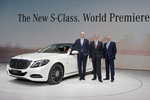 Die drei von bzw. vor der neuen Mercedes S-Klasse: Dr. Zetsche, Prof. Thomas Weber (Daimler Vorstand Entwicklung) und Dr. Joachim Schmidt (Leiter Marketing und Vertrieb Mercedes-Benz Cars)