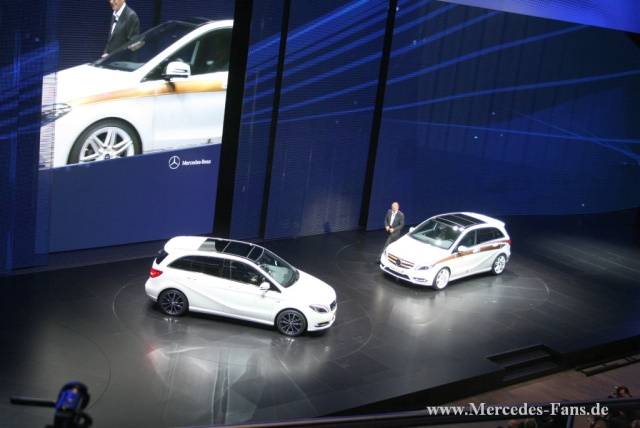 Hauptakteure der Bühneninszenierung Mercedes Next sind die Premieren-Fahrzeuge von Mercedes-Benz. Die Besucher erleben fortlaufend Auf- und Abtritt von neuer B-Klasse, neuer M-Klasse und des Forschungsfahrzeugs F 125! Die Fahrzeugbewegungen verschmelzen mit Medien, Präsentationsformaten und Menschen zu einer Choreographie mit zahlreichen Tempowechseln. Dabei schaffen horizontal und vertikal angeordnete LED-Flächen und Vorhänge unterschiedlicher Auflösungen Räume, die vor allem durch ihre Tiefe überraschen. Die Weitläufigkeit der Bühne mit ihren langen Fahrwegen und ein großzügiger Bühnenrückraum geben den Raum für vielfältige Inszenierungen.