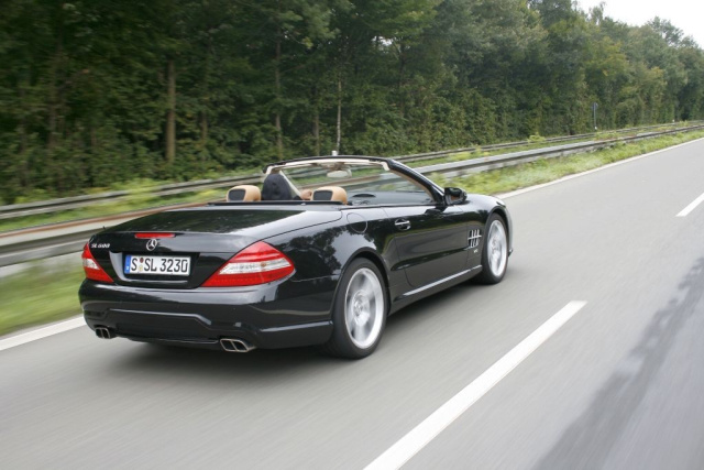 Bleibt das Dach geschlossen, glänzt der SL 600 mit einer eleganten Coupé-Silhouette, bei der zweimal hinzuschauen ist, um zu erkennen, dass sich das Dach bei Bedarf im Kofferraum zusammenfaltet.