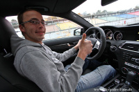 Neben etwas fahrerischer Theorie und Vermittlung fahrdynamischer Grundkenntnisse stand für den Gewinner Joschka Busch und die restlichen Teilnehmer natürlich das fahrerische Erlebnis auf der Tagesordnung. Der KFZ-Mechatroniker pilotiert privat einen 190er Baby-Benz und zeigte sich sichtlich beeindruckt von der Performance und technischen Perfektion der AMG Modelle: