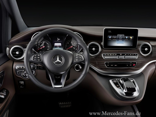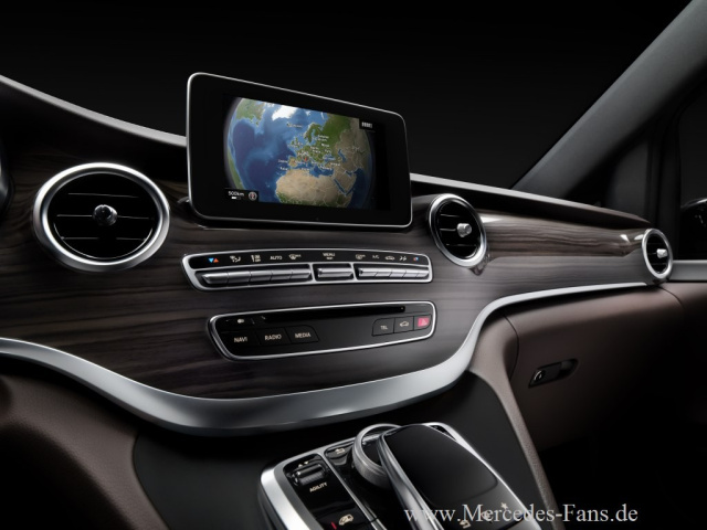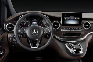 Die Mercedes-Benz V-Klasse bringt das modernste Bedien- und Anzeigekonzept in ihr Segment. Die wesentliche Innovation ist das multifunktionale Touchpad an der Instrumententafel. Es lässt sich wie ein Smartphone mit Gesten oder der Eingabe von Buchstaben und Zeichen bedienen. Darüber hinaus feiern Bedien- und Anzeigelemente, die sich in zahlreichen Mercedes-Benz Pkw-Baureihen bestens bewährt haben, ihre Premiere in diesem Segment: unter anderem COMAND Online mit COMAND Controller (Dreh-/Drücksteller), DIRECT SELECT-Wählhebel am Lenkrad, Zentraldisplay und Farbdisplay im Kombiinstrument.