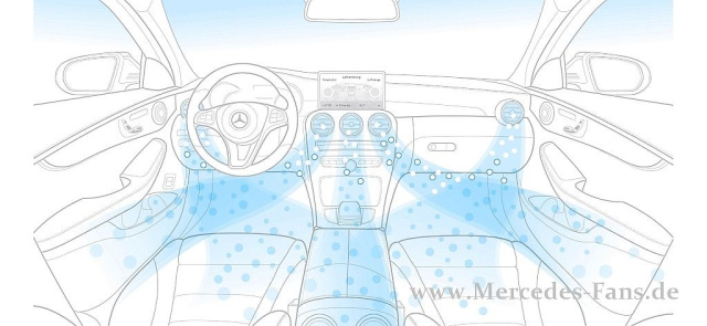 Mit der komplett neu entwickelten C-Klasse bietet Mercedes-Benz mehrere Upgrades, darunter auch eine GPS-sensitive Klimaanlage. Damit hat die neue C-Klasse als einziges Fahrzeug in ihrem Segment eine Klimaanlage an Bord, die bei Erkennung eines Tunnels via Satellitennavigation automatisch auf Umluft schaltet. Des Weiteren ist das AIR-BALANCE Paket mit Luft-Ionisierung und aktiver Beduftung für gesteigertes Wohlfühlklima dabei, das in der neuen S-Klasse Weltpremiere feierte.