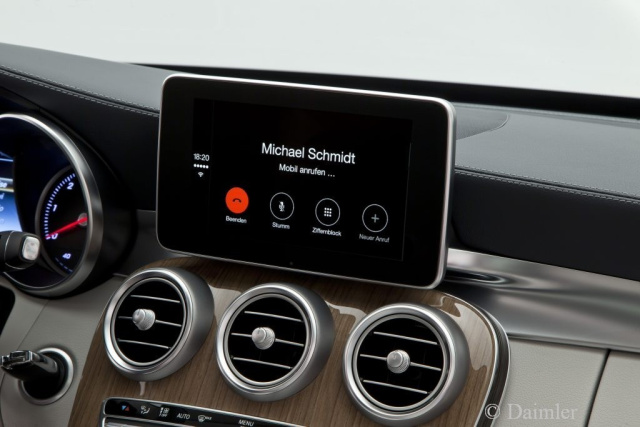 Der erste Einzug von CarPlay in einen Mercedes-Benz ist dieses Jahr für die neue C-Klasse angekündigt. Weitere Modelle sollen folgen und für ältere Fahrzeuge sind Nachrüstmöglich-keiten in der Planung.