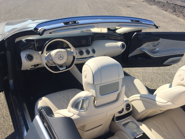 Das S-Klasse Cabriolet lässt sich direkt lenken und bietet einen „sportlichen Komfort“. Das – Achtung! - 2,6 Tonnen Schiff liegt satt auf der Straße, beschleunigt aus dem Stand auf 100 km/h in rund 4,6 Sekunden. Dabei versieht die 9G-Tronic ihren Dienst fast unbemerkt – wer will kann manuell schalten und walten – wer aber wie ich zwischendurch sportliches Cruisen bevorzugt, der wird die Automatik mögen.
