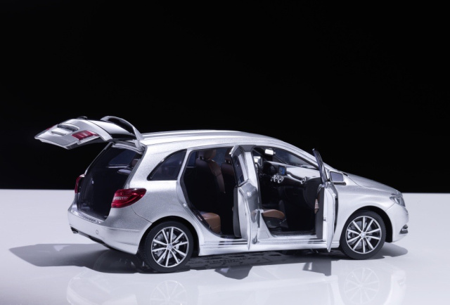 Wie bei der Mercedes-Benz Collection üblich, lag größtes Augenmerk auf der Originalitätstreue. So sind die Modellautos in zahlreichen Original-Außenfarben und mit beliebten Sonderausstattungen wie ILS-Scheinwerfern oder Panoramadach erhältlich. Bei den Miniaturen im Maßstab 1:43 (Preis: 29,90 Euro*) und 1:18 (69,90 Euro*) sind im Innenraum sogar die Zierelemente wie bei den Originalen ausgeführt. So sind die Zierelemente bei der B-Klasse in Wurzelnuss braun, Waben- oder Matrixoptik gehalten, während bei der M-Klasse je nach Außenfarbe Aluminium, Pappel anthrazit sowie Esche braun Verwendung finden. Bei den 1:18-Modellen lassen sich Vorder- und Hecktüren sowie Motorhaube und Heckklappe öffnen. Innen- und Kofferraum sind hier zudem komplett beflockt, und bei der B-Klasse kann die Rücksitzbank nach vorne geklappt werden. Alle Modellautos der Mercedes-Benz Collection werden in der Mercedes-Benz Designer Verpackung geliefert. Bei den 1:18-Modellen ist ein Schraubendreher beigelegt, mit dem problemlos die Schrauben von der Verpackung gelöst und das Modell herausgenommen werden kann.