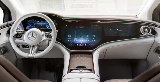 Das 90,6 kWh große Batteriepaket im Unterboden realisiert je nach Version elektrische Reichweiten von bis zu 590 Kilometern, während die AMG-Versionen bis zu 480 Kilometer schaffen, ehe es an die nächste Ladesäule geht. Der Stromverbrauch liegt zwischen 17,7 und 22,7 kWh auf 100 Kilometern. Um den Verbrauch zu reduzieren, schaltet sich bei den Allradversionen die Vorderachse komplett ab, wenn die zusätzliche Traktion nicht benötigt wird. Nachgeladen werden kann an einer Schnellladesäule mit maximal 170 Kilowatt, was den Akku nach 15 Minuten um 220 Kilometer erstarken lässt. Bei den AMG-Versionen sind es in der gleichen Zeit zumindest 170 Kilometer. Neben den verschiedenen Fahrprogrammen lässt sich wie bei den anderen EQ-Modellen von Mercedes die Rekuperation über Schaltpedale am Lenkrad bis hin zur maximalen Verzögerung des sogenannten One-Pedal-Gefühl einstellen. In diesem Fahrmodus wird das Bremspedal nur für starke Verzögerungen benötigt. Den Rest erledigt das Gaspedal.