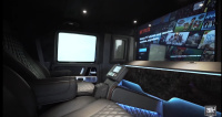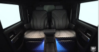 Wer als besonders schutzbedürftige Person mobil unterwegs sein möchte, sitzt in dieser G-Klasse der kanadischen Spezial-Schmiede Inkas (Toronto) nicht verkehrt. Die Basis für den Umbau bildet der neue G63 AMG (W463A) mit 585-PS-Leistung. Die kugelsicher und lang gemachte G-Klasse (6,19 m) trotzt blauen Bohnen und selbst schwerem Granatenbeschuss. Und während es draußen wohlmöglich ungemütlich werden kann, genießen die Insassen in der G63 Strechlimo einen Komfort der allerhöchsten Güte. Die gepanzerte G-Klasse von Inkas verfügt in ihrem geräumigen Innenraum über eine Bar und einen hochauflösendem 4K-TV und Apple-TV-Integration plus First-Class-Audiosystem. Die komfortablen Einzelsitze im Fonds verfügen über Massagefunktion und sind mit Premium-Alcantara und Lederbesatz bezogen. Am Stuhl befindet sich eine Steuerungseinheit, mit der sämtliche Gerätschaften bedient und alle Sicherheitsinfos angerufen werden können. Zum luxuriösen Interieur gehören ferner ein dimmbare Tageslicht-Dachhimmel, der u.a. Lichtwechsel und eine realistische Sonnenlichtsimulation bietet.
