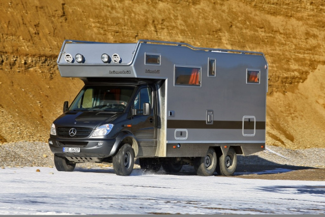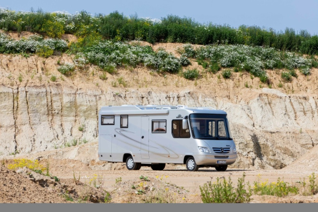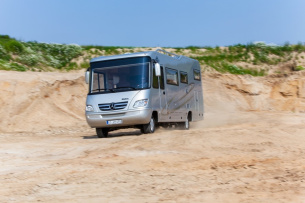 Mit dem Sprinter 519 CDI 4x4 als Basisfahrzeug ist das Luxus-Reisemobil auch etwa für den Einsatz auf Schnee und Eis ausreichend traktionsstark. Im echten Gelände wird den Allrad-Integrierten wohl kaum einer der künftigen Besitzer ernsthaft einsetzen trotz der Höherlegung von acht Zentimetern. Aber es dürfte ein gutes Gefühl sein, auch mal an einen einsam gelegenen Strand fahren und dort übernachten zu können, ohne gleich zu versanden oder nach dem Frühstück einen Traktor für Zughilfe suchen zu müssen. Den Kunden dürfte auch die eTraktions-Regelung entgegen kommen. Die Technik erledigt beinahe alles, dem Fahrer verlangt der Sprinter lediglich gefühlvolles Gasgeben und Steuern ab. Der Zuschalt-Allrad ist ins serienmäßige Elektronische Stabilitäts-Programm ESP integriert und ergänzt sich daher mit den Sicherheitssystemen des besternten Basisfahrzeugs.