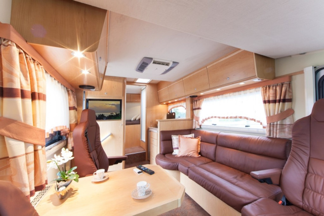 Für einen Vertreter der Königsklasse des Reisemobilbaus ist der Star 750 mit einer Gesamtlänge von 765 Zentimeter und einem Radstand von 4.325 Millimeter relativ kompakt geraten. Der Integrierte ist 2.360 mm breit und 3.140 mm hoch. Die Ausstattung im Interieur des allradgetriebenen Luxus-Liners besticht mit ihrem Möbelbau in Echtholz in Kanadischem Ahorn, dazu gibt es eine Echtleder-Polsterung und einen auf starke Belastung ausgelegten Bodenbelag. Obendrein offeriert das komfortable Mobil zwei separate Schlafbereiche. Im Heck gibt es für die Eigner ein Doppelbett, zusammen mit einem optionalen Hubbett können so bis zu vier Personen im Star 750 mitreisen und übernachten.