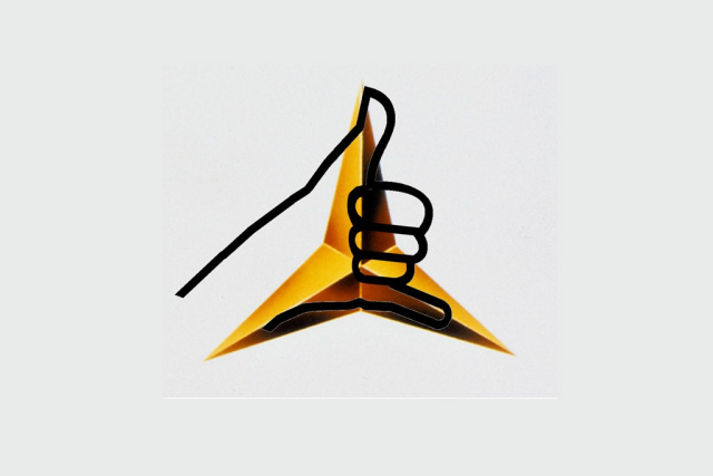 "Für die Gruppe der Mercedes-Fahrer/innen habe ich mir nun den HandStern überlegt. Dabei wird die Hand ähnlich wie beim Hang loose gehalten, jedoch zeigt der Daumen ganz bewusst nach oben und man versucht Daumen, kleinen Finger und Arm jeweils 120° versetzt auszurichten, so dass ein Stern entsteht (siehe Abbildung oben). Damit sich dieses Zeichen schnell in der Szene einbürgert steht hier auch eine Vorlage für das Plottern solcher Aufkleber zur Verfügung, ich bitte dabei das Design nicht weiter zu verändern und freue mich auf viele Fahrzeuge mit dem HandStern in der Saison 2011 (Abbildungen in der Bildergalerie)."