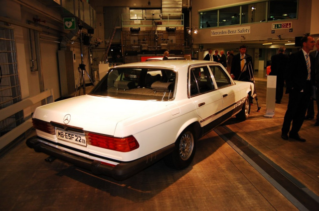 wollen eine Replika zeitgenössischer Crash-Fahrzeuge", so der Leiter der Mercedes-Sicherheitsabteilung Ulrich Mellinghof. Aber die dort ebenfalls geparkten S-Klassen, das waren nicht wirklich S-Klassen, sondern tatsächlich echte Meilensteine der Mercedes-Benz-Sicherheitsforschung.