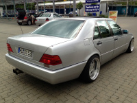 das ist mein Stern! Es ist ein W140 400 SE 4.2 V8, einer der ersten von Bj: 1991 ist aber sehr gut ausgestattet für Bj. 1991. Ich habe ihn von 1. Hand gekauft vor ca. 4,5 Jahren - allein 1,5 Jahre habe ich gebraucht für den Umbau: Tieferlegung 80/60mm von H&R, die Felgen sind von Mariani mit hi. 14jx18 285/35ZR18 vo. 9,5jx18 225/40ZR18 und der Sound ist von 400SE V8 Eisenmann. Ein paar Kleinigkeiten hat er noch wie Motor Fernstart, US- Blinker und und und......