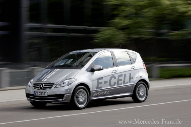 Nach der B-Klasse F-CELL mit Brennstoffzelle bringt Mercedes-Benz mit der neuen A-Klasse E-CELL jetzt sein zweites unter Serienbedingungen gefertigtes Elektroauto auf die Straße. Der voll alltags- und familientaugliche Fünfsitzer mit batterie-elektrischem Antrieb basiert auf der fünftürigen Ausführung der aktuellen A-Klasse und bietet einen großzügigen und flexibel nutzbaren Innen- und Kofferraum. Die beiden hocheffizienten Lithium-Ionen Batterien ermöglichen eine Reichweite von mehr als 200 km (NEFZ). Für den Vortrieb sorgt ein leiser, lokal emissionsfreier Elektromotor mit 70 kW (95 PS) Spitzenleistung und einem hohen Drehmoment von 290 Nm. Insgesamt 500 Exemplare der neuen A-Klasse E-CELL werden ab Herbst 2010 in Rastatt gebaut.