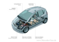 Neben vorbildlicher Sicherheit, optimalem Komfort und hoher Alltagstauglichkeit bietet die A-Klasse E-CELL noch weitere Stärken, die für heutige Elektroautos nicht selbstverständlich sind: Agilität und Fahrspaß. Maßgeblich dafür ist der tiefe Fahrzeugschwerpunkt, der unter anderem aus der niedrigen Einbaulage der Batterien im so genannten Sandwichboden resultiert. Dies führt zu einer ausgewogenen Straßenlage und einem agilen Fahrzeug-Handling. Damit unterscheidet sich die A-Klasse E-CELL maßgeblich von anderen Elektroautos, bei denen die schwere und voluminöse Speicherbatterie beispielsweise im Kofferraum oder im Bereich der Rücksitze untergebracht ist. Weiterer Vorteil dieser Einbauposition: Sie bietet bestmöglichen Schutz vor Intrusionen bei einem Front- oder Heckaufprall, weil die Energiespeicher außerhalb der Verformungszonen der Karosserie liegen. Zudem kann die besonders stabile Konstruktion des Sandwichbodens Batterie und Insassen auch bei einem Seitenaufprall hervorragend abschirmen.