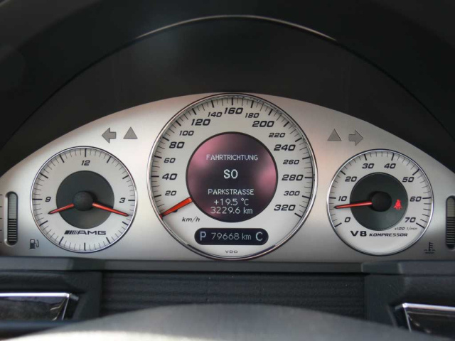 Kommen wir zum wirtschaftlich spannenden Teil der Geschichte. Ein E 55 AMG der Baureihe W 211, Baujahr 2003, wie wir ihn gefahren haben, ist in brauchbarem Zustand ab 25.000 Euro zu bekommen. Unser Exemplar dürfte darüber liegen, denn es besitzt einige wertsteigernde Eigenschaften: Eine vergleichsweise geringe Laufleistung von 80.000 Kilometern, Ersthandbesitz und ein lückenloses Mercedes-Scheckheft.