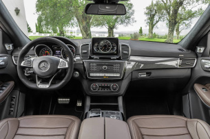Auch der Innenraum erfüllt mit luxuriösem Ambiente und gekonnt gesetzten dynamischen Akzenten höchste Ansprüche. Erstklassige Verarbeitungsqualität, hochwertige Materialien und viel Platz für bis zu sieben Passagiere und ihr Gepäck machen lange Reisen zum entspannten Vergnügen. Fahrer und Beifahrer profitieren von neuen Sportsitzen mit AMG- spezifischer Sitzgrafik und optimiertem Seitenhalt. „AMG“ Plaketten in den Sitzlehnen der ersten und zweiten Sitzreihe zeigen die Liebe zum Detail. Das neue Performance-Lenkrad im 3-Speichen-Design mit unten abgeflachtem Lenkradkranz und Aluminium-Schaltpaddles erlaubt eine perfekte Fahrzeugkontrolle. Die hochwertige Polsterung Leder Nappa AMG ist in den attraktiven Farbtönen Schwarz, Espressobraun/Schwarz und Porzellan/Schwarz erhältlich. Auf Wunsch steigern AMG Zierelemente Carbon / Klavierlack Schwarz und die Polsterung Leder Nappa Exklusive AMG das Ambiente. Das teilintegrierte Zentraldisplay auf der Instrumententafel visualisiert die einzelnen DYNAMIC SELECT Fahrprogramme mit animierten Grafiken.