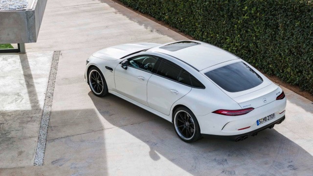 Neben den beiden V8-Motoren ist der neue viertürige Sportwagen als Mercedes-AMG GT 53 4MATIC+ (Kraftstoffverbrauch kombiniert 9,1 l/100 km, CO2-Emissionen kombiniert 209 g/km) auch mit dem innovativen AMG Reihensechszylinder erhältlich. Das 320 kW (435 PS) starke 3,0-Liter-Aggregat zeichnet sich durch hohe Performance aus, unterstützt durch eine Boost-Funktion mit bis zu 16 kW (22 PS) Leistung und 250 Newtonmeter Drehmoment. Der EQ Boost Startergenerator vereint Anlasser und Lichtmaschine in einem leistungsfähigen Elektromotor, der zwischen Motor und Getriebe verbaut wurde. Diese intelligente Kombination trägt gemeinsam mit der effizienten Aufladung mit elektrischem Zusatzverdichter (eZV) und Abgasturbolader dazu bei, die AMG-typische Performance und Fahrdynamik zu gewährleisten, gleichzeitig aber auch Verbrauch und Emissionen zu senken. Der viertürige AMG GT 53 beschleunigt in nur 4,5 Sekunden von 0 auf 100 km/h und erreicht 285 km/h Höchstgeschwindigkeit.